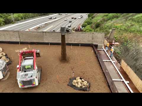 De olika jordlagren på bron över motorvägen 101 i USA.