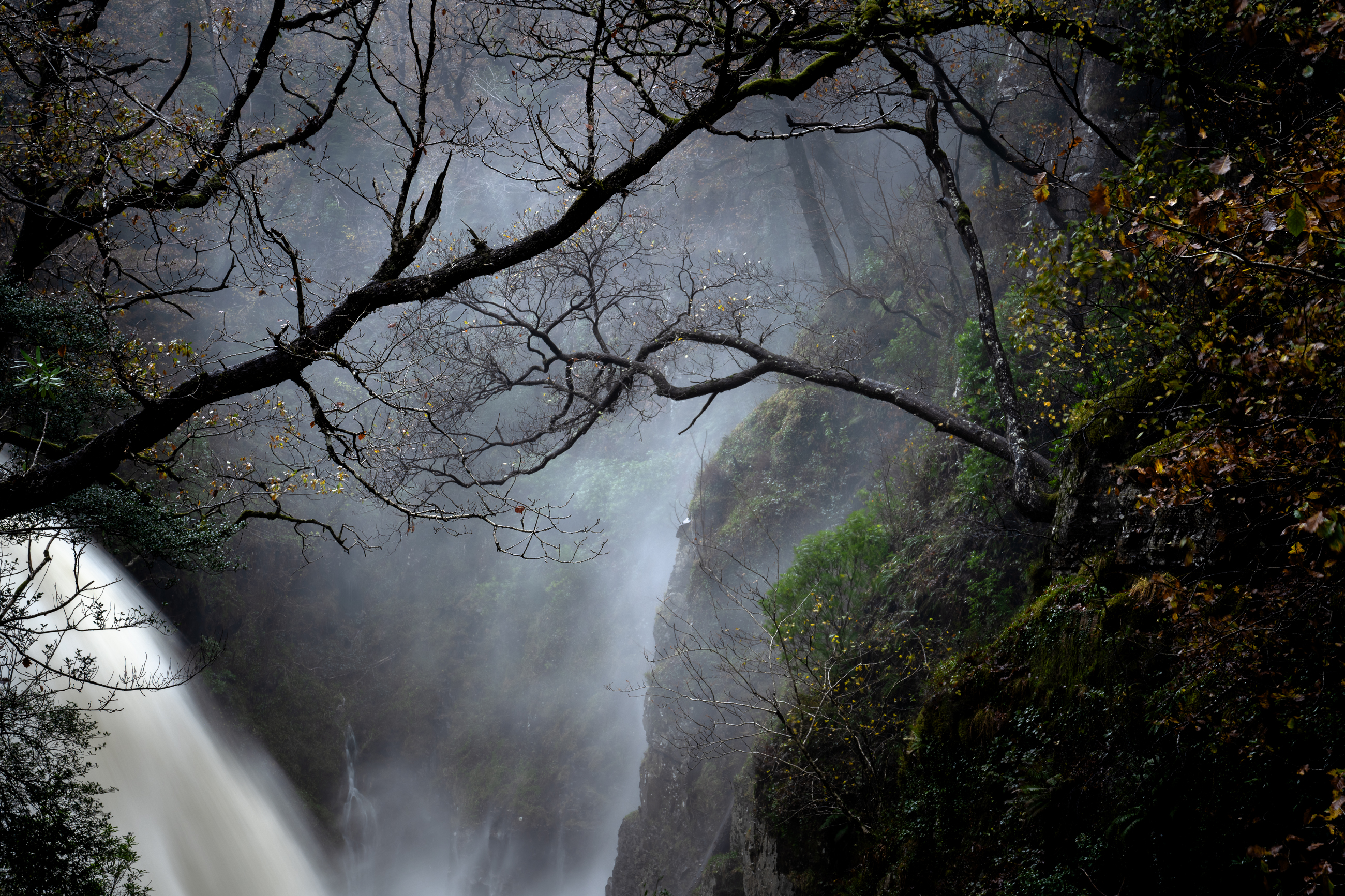 Vattenfall i Coed y Brenin där senaste tiden ihärdiga regnande gjort vattenfallet till ett så kraftfullt fall.