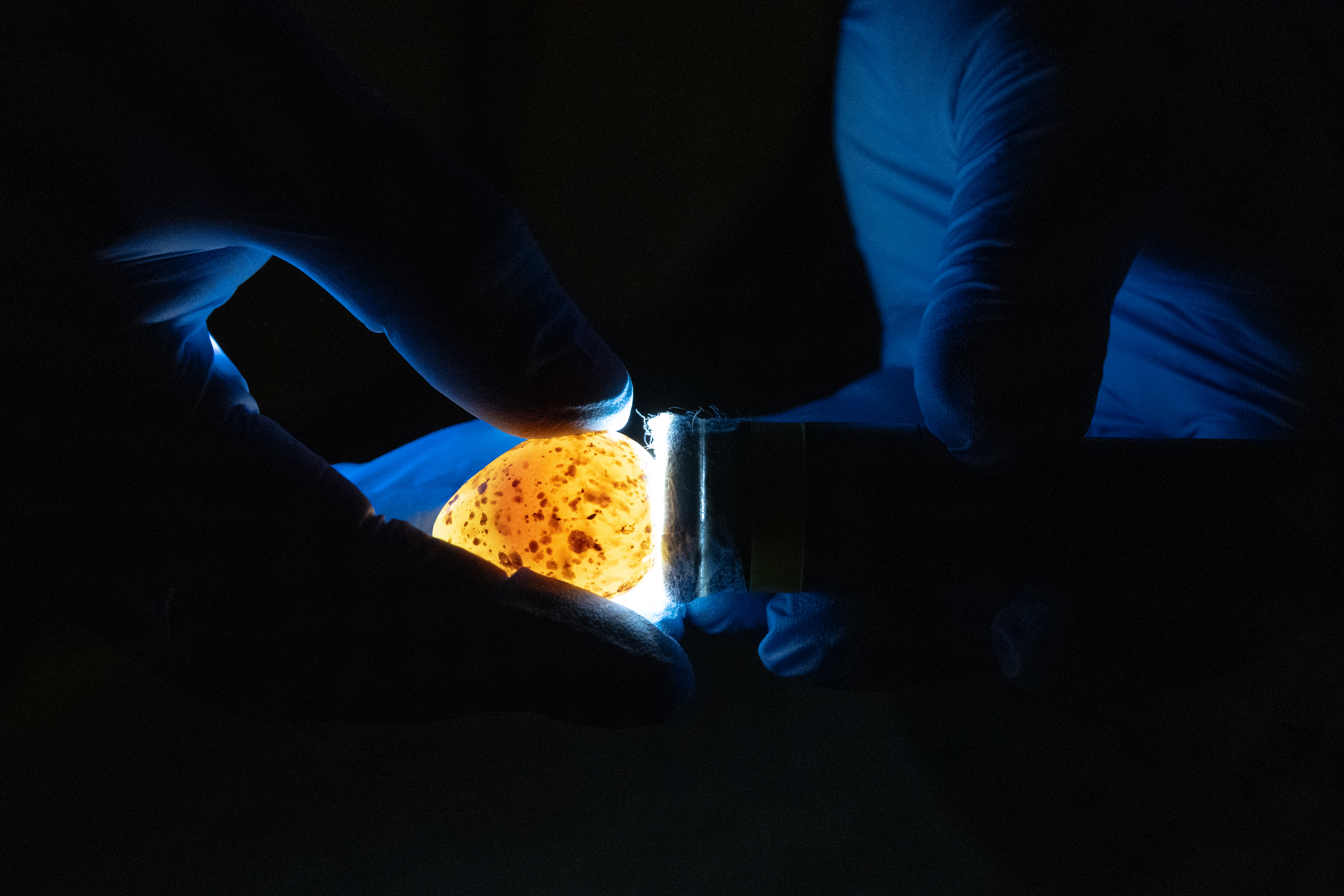 Lysning av ett kärrsnäppeägg.