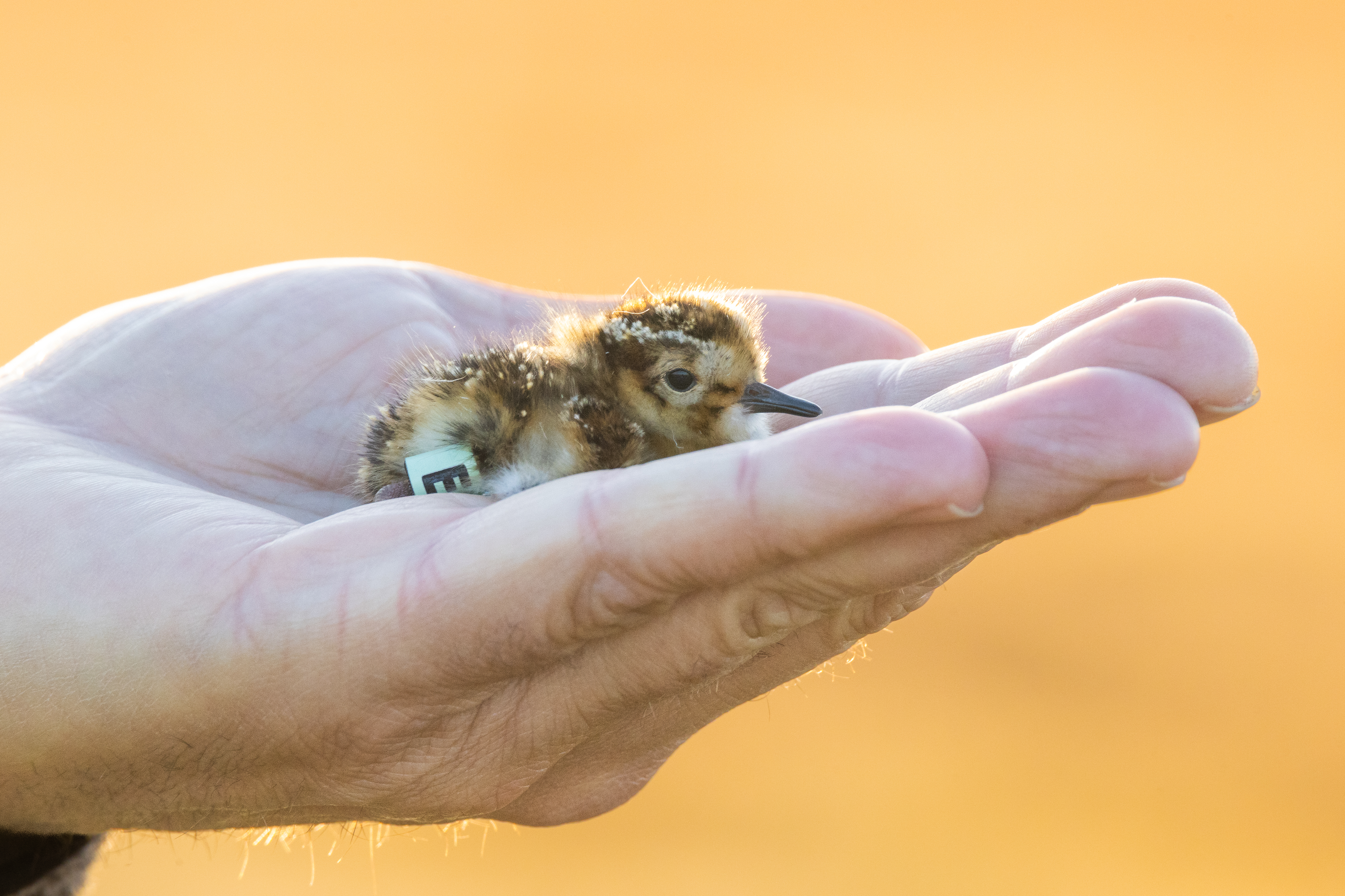 Nyligen ringmärkt kärrsnäppa – 1 dag gammal.