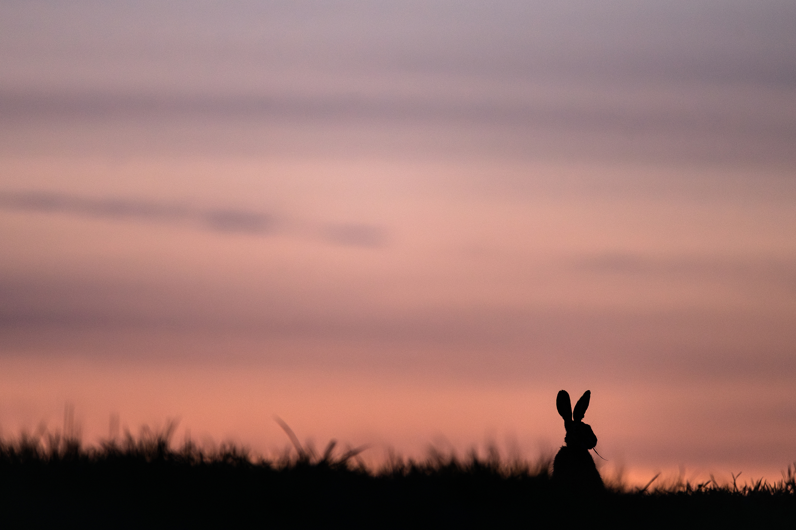 1 maj. Jag smyger så långsamt att benen blir alldeles skakiga. Haren födosöker i lugn och ro i det öppna landskapet innan solen går över horisonten och det är dags att dra sig in i skogen. Allt fler fåglar stämmer in i morgonserenaden och daggen får växtligheten att fullkomligt explodera i ljuvliga dofter. En perfekt morgon i stillhet.