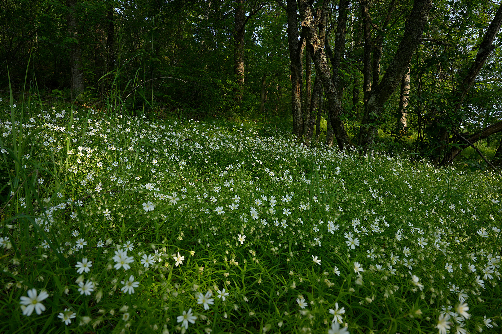 Buskstjärnblomma Under maj-juni bjuder parken på en mustig frodighet med en stor artrikedom av växter.