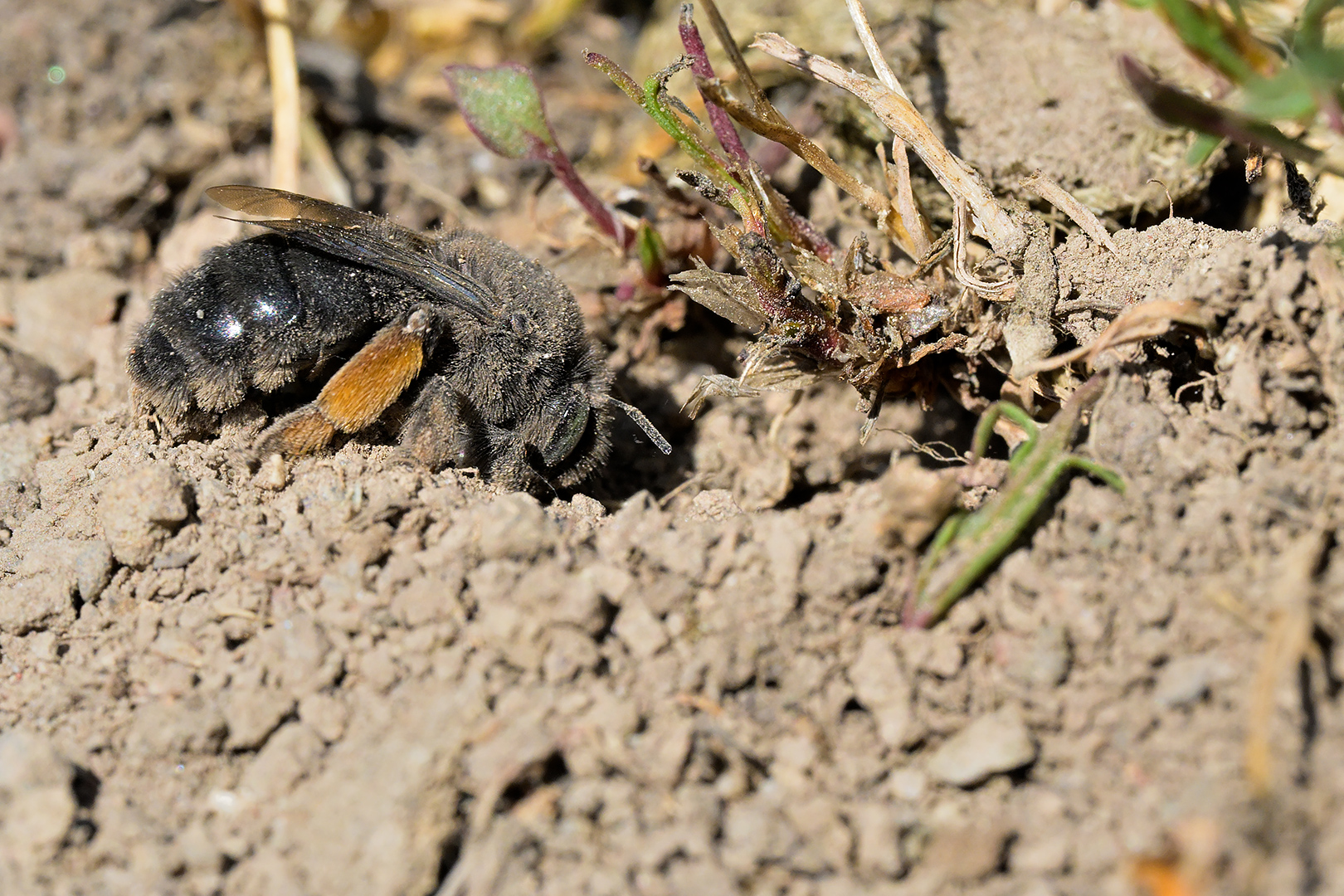 Svartpälsbi. Nationalstadsparken hyser inte bara fåglar och däggdjur. Dess biologiska mångfald inbegriper även de små varelserna också, kanske de viktigaste livsformerna för den biologiska mångfalden. Här den mycket humle-liknande honan som gräver bo-hålor i torra sandiga jord-plättar där hon sedan lägger sina ägg i.