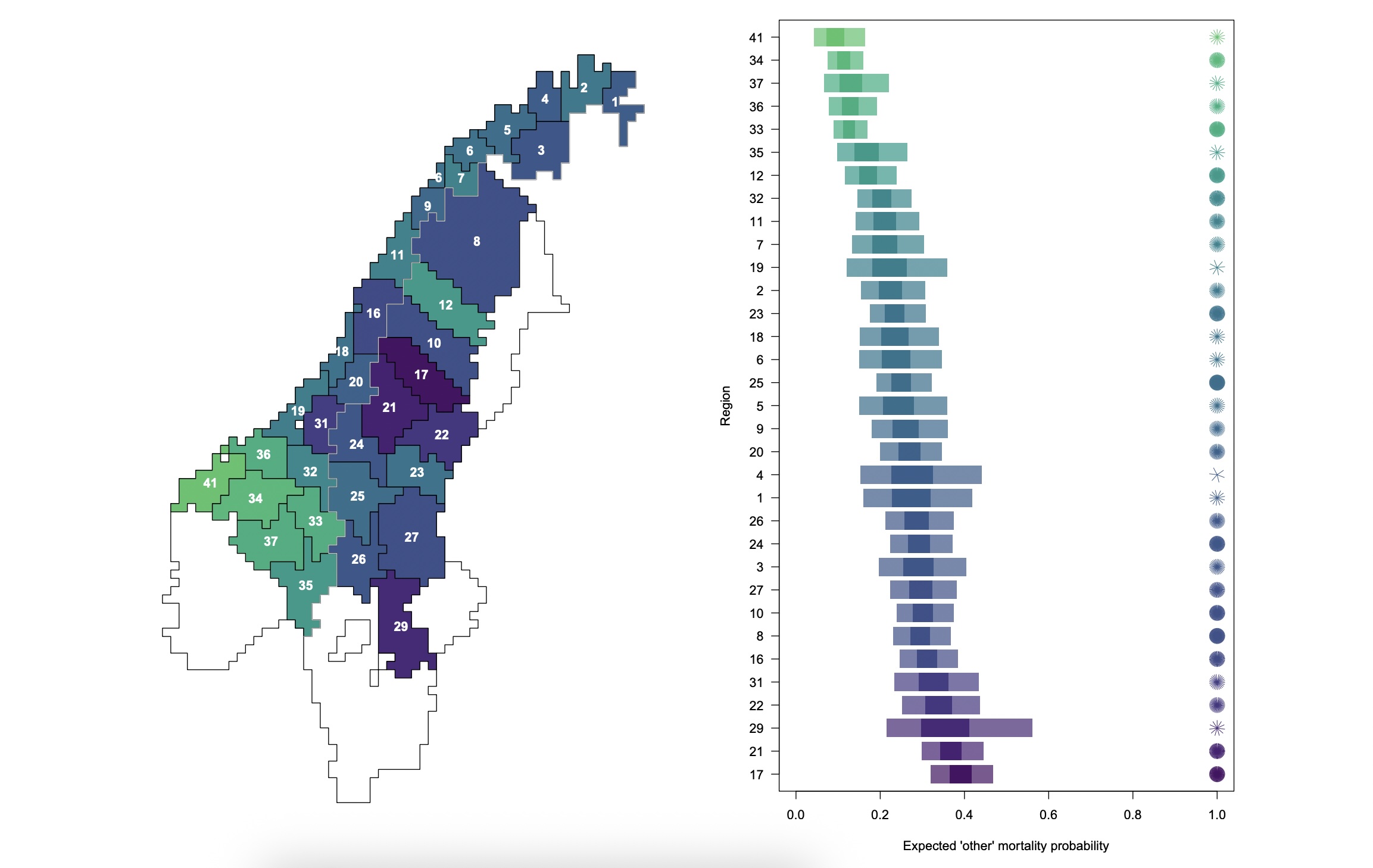 – Även om modellen inte skiljer mellan de olika dödsorsakerna inom kategorin ’andra orsaker’, avslöjar den områden med förhöjd dödlighet, säger Milleret.